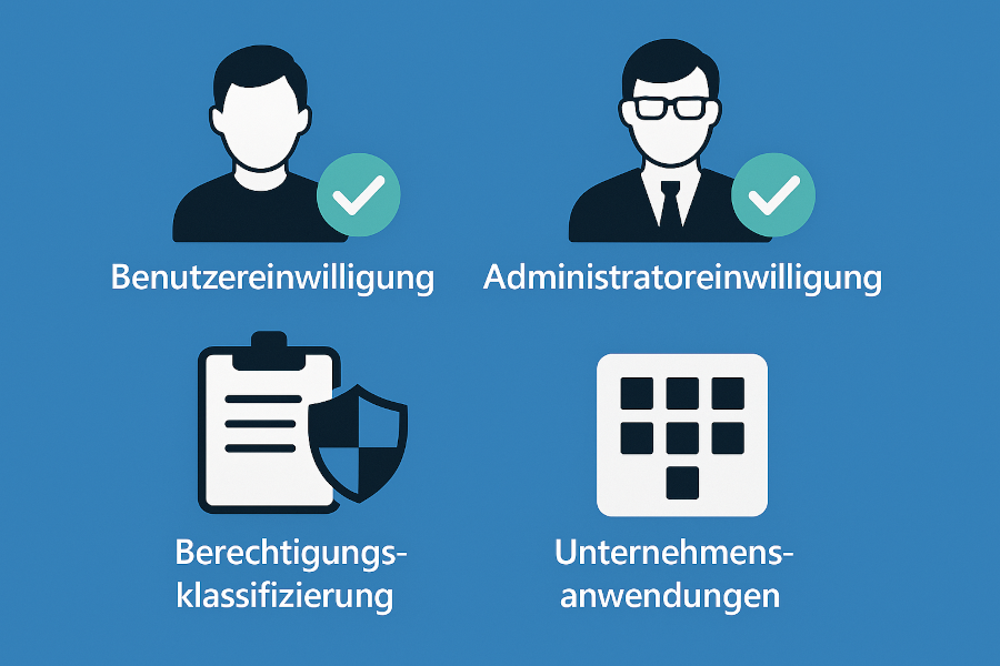 - Administrator-Einwilligung: Ein Admin kann einer App Zugriff auf Daten für alle Benutzer im Mandanten gewähren. Beispiel: Eine App benötigt „Mail.Read“ für „alle Benutzer“. Dies kann nur ein Admin genehmigen. Die Funktion wird häufig in Multi-Tenant-Apps oder Service-Accounts verwendet.